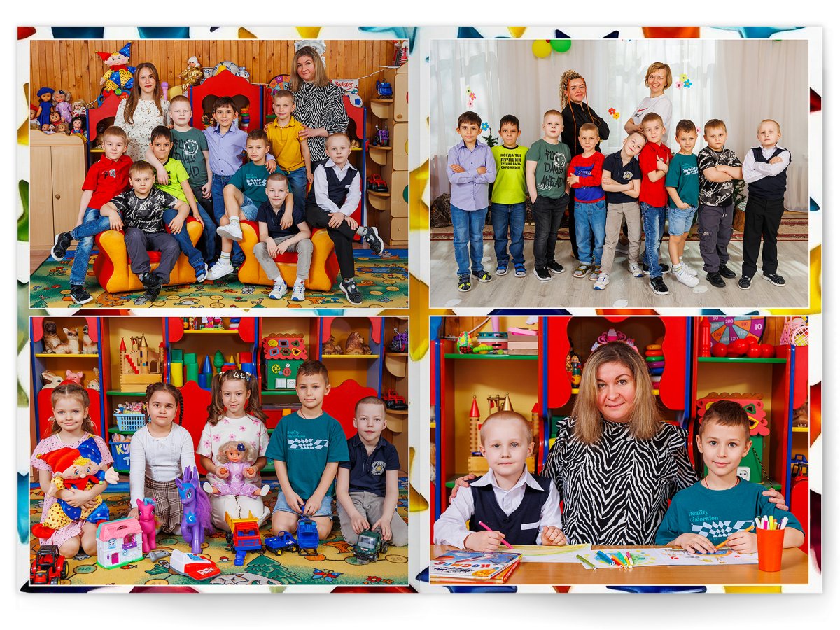 • Портреты всех детей и воспитателей на развороте