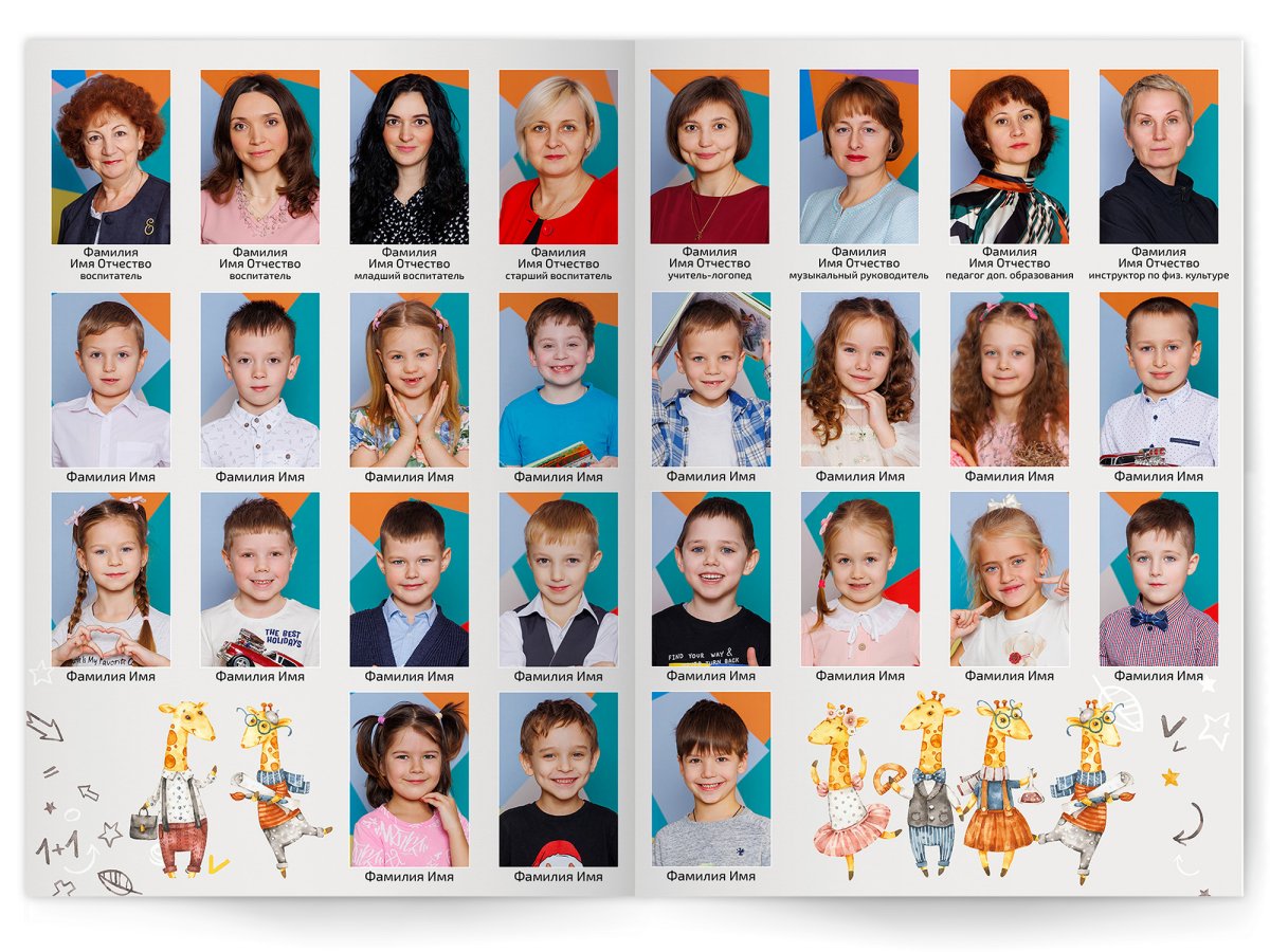 • Портреты всех детей и воспитателей на развороте