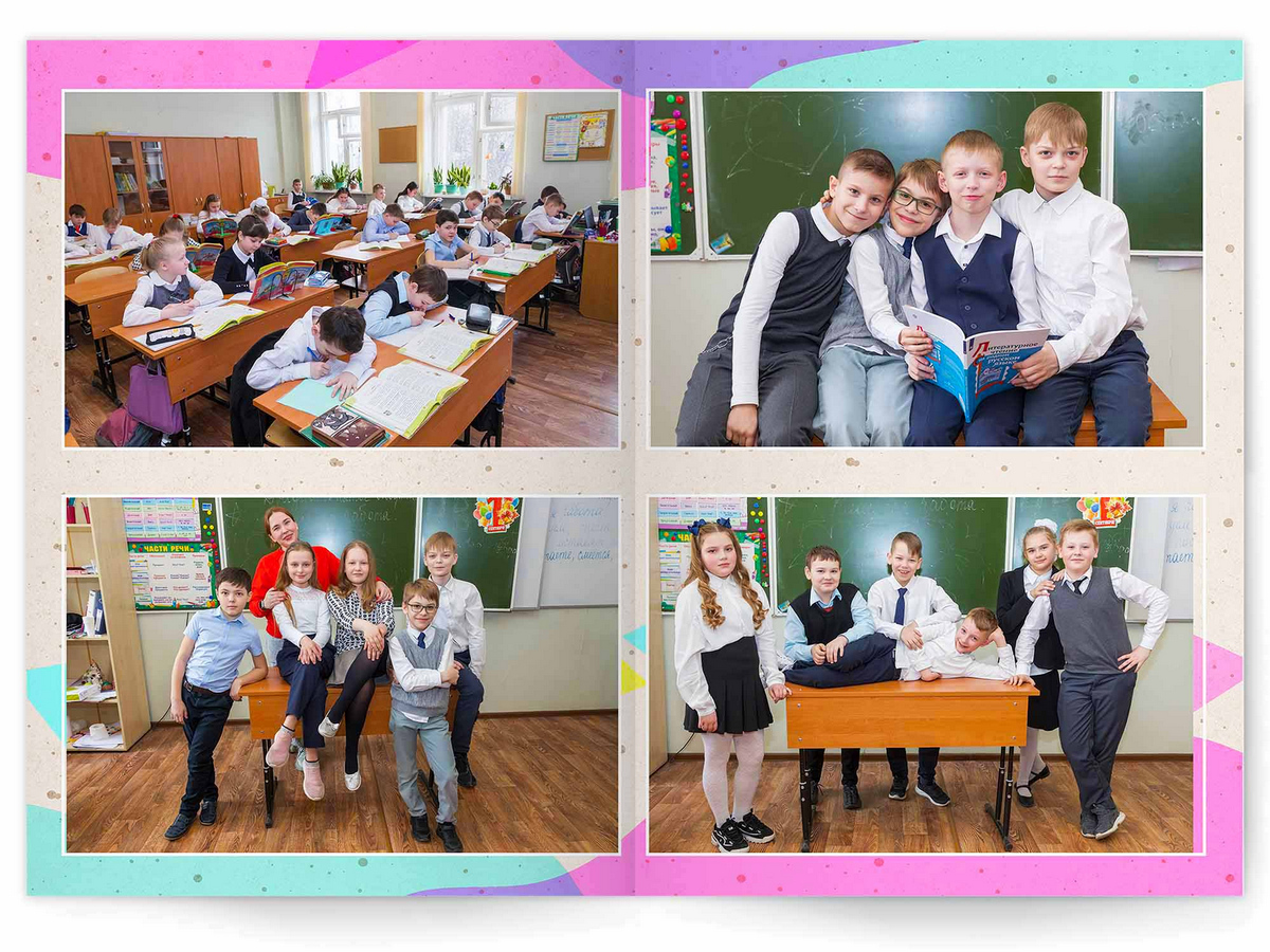 • Съёмка альбома в фотостудии от +750 ₽/человек (точная стоимость зависит от количества учеников и выбранной фотостудии)