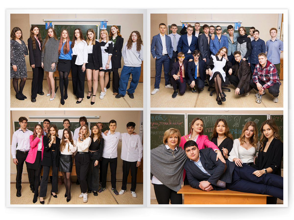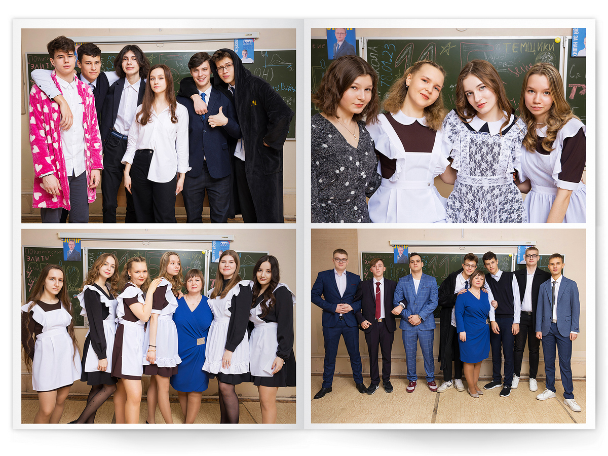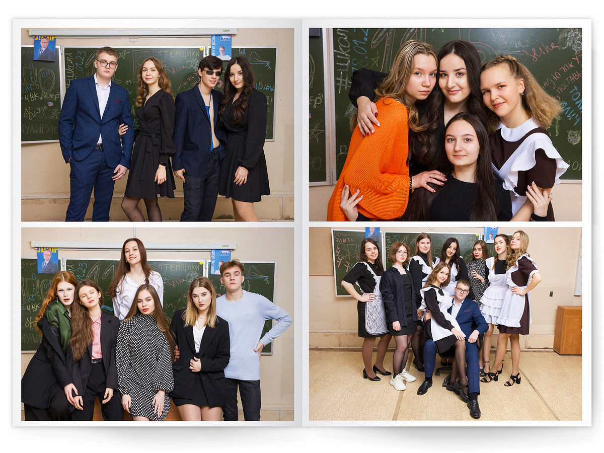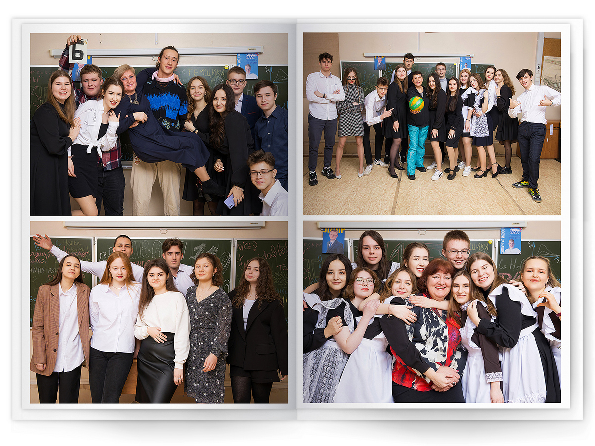 • Съёмка альбома в фотостудии от +750 ₽/человек (точная стоимость зависит от количества учеников и выбранной фотостудии)