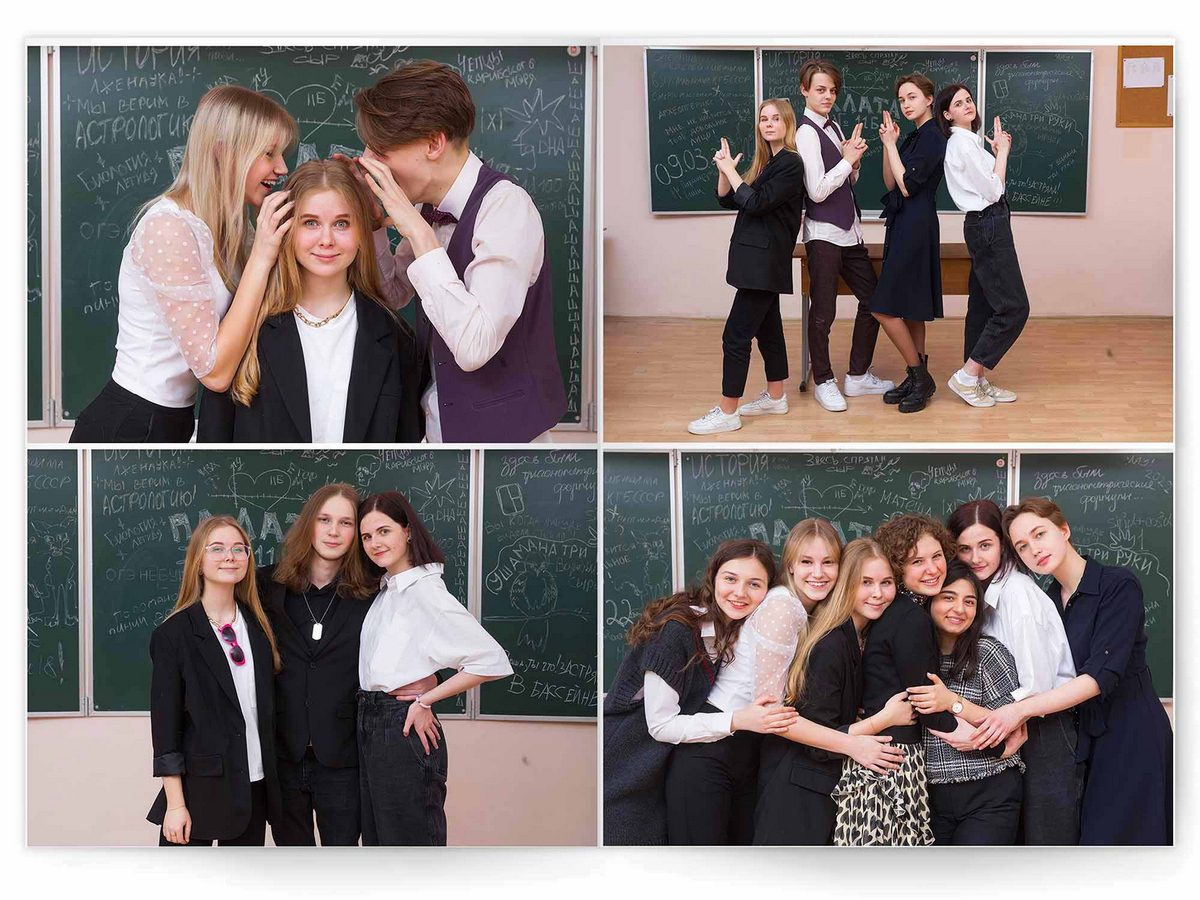 • Съёмка альбома в фотостудии от +750 ₽/человек (точная стоимость зависит от количества учеников и выбранной фотостудии)