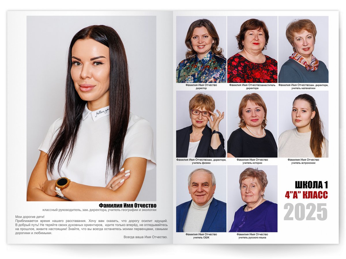 • Съёмка альбома в фотостудии от +750 ₽/человек (точная стоимость зависит от количества учеников и выбранной фотостудии)